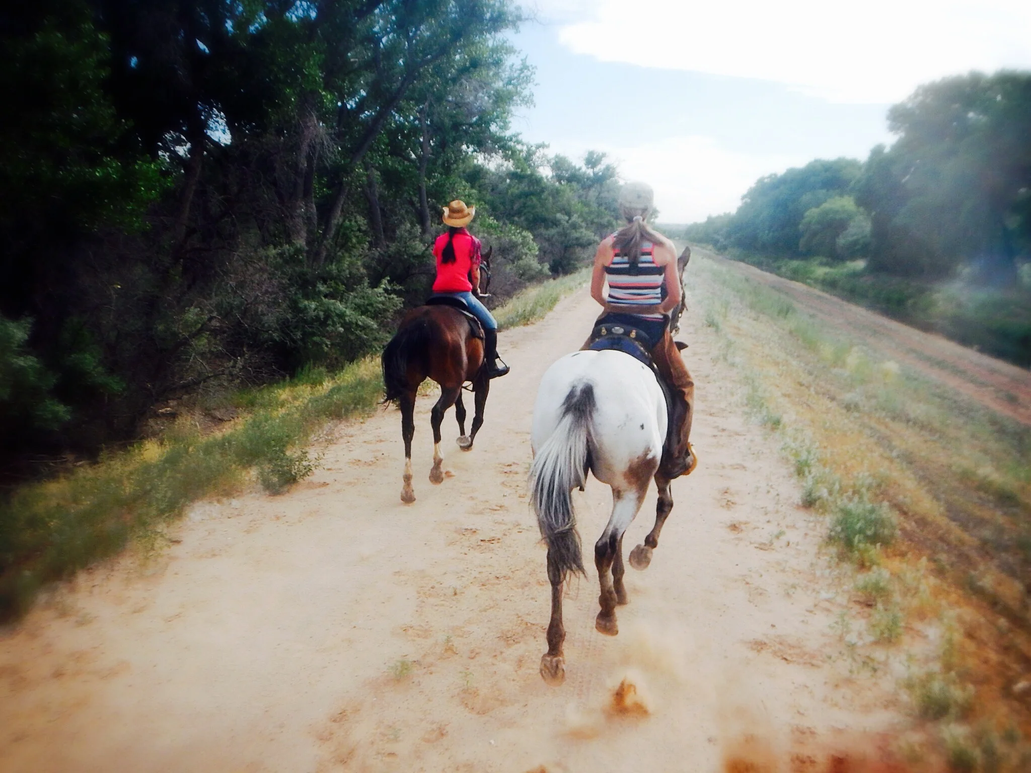 Unlike many outfitters who ride in the same area, we take advantage of New Mexico's diverse landscapes and terrain by trailering out to a new trail each day. We load horses, tack, picnic, and clients and drive 20–45 minutes to our riding destination. Some days we will be galloping through the sandy arroyos of a painted desert; the next day we will scale alpine forests; and we love to splash through the waters of the Rio Grande River. We do not camp out in these places (unless you signed up for the Glamping Ride) but return back to the ranch, where a hot shower, a hearty meal, and a soft bed await.
