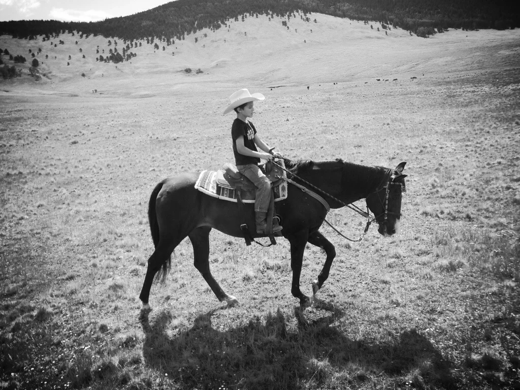 He was an old man, 28 to be exact, when we first found him. The black mustang with a broad white stripe down his nose had ambled through the paddocks and gummed his hay for almost ten years at the rescue. Although his sway backed apperience deemed him a pasture pal, it was his crow hopping antics that landed him on the unrideable list. Neither of this deterred my mothers love for the dark and handsome animal. So when the day came to take Cash and Zena home for the first time, we loaded Bozley right in behind them. We knew that Bozley had a limited number of years under saddle left to him but he wasn't ready for retirement just yet. He still had he most important job any horse could have, to teach a little boy how to ride. His easy going nature and smooth gait made him the ultimate teacher, but his lessons were hard learned. One afternoon we were out on trail, my nephew Taryn had just become comfortable riding off lead, and Bozley spooked. Taryn flopped in the saddle, his horse gave a little buck, and the boy somersaulted through the air landing on the ground in a belly flop. Taryn didn't move and Bozley stood there staring at him, both a little stunned at the event. I jumped off my own horse and scooped him up in my arms. After a good long hug I asked him, "What do cowboys do when they get thrown from their horse?" He replied through big boy tears, "Get back on." He wiped the dirt from his face, petted Bozley's nose making them both feel a bit better, and got back on.