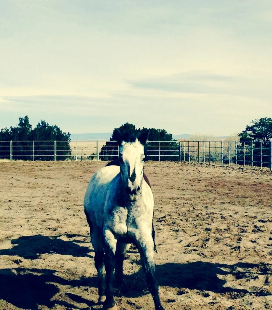 Zena in some language or culture has to translate as Queen, because that is exactly what this silvered chrome Appaloosa mare is, the queen of the heard. When we first encountered her at the rescue ranch, Zena had the attitude to match a spoiled and haughty monarch. She refused to listen to those she believed beneath her, which equated to any human with in biting range, and ran over those who didn't move out of her regal path. Yet, when you were on her back she made you feel like royalty yourself. Her walk is noble and proud, striding out with purpose and intensity. This is what Mel fell in love with. Now we all tend to favor a certain breed or type of horse, Mel tends to gravitate to big, solid, dark sport horses. Zena is smaller, stocky, light and spotted with pink rimmed eyes that gives her a wild looking disposition. Although she was not Mel's first choice of the herd, there was something about her imperious nature that presented a challenge. At this point Mel and I were volunteering on the rescue ranches training team. My mother had a knack for working with difficult horses and starting them on a new path toward adoption. Mel's fully intended to do the same with the appy mare but I'll never forget the day that changed her mind. While out trail riding, being a bit of an adventure, she turned Zena down a ruddy path that I hesitated to follow. The two crashed through brush and weeds as if it were a pasture of tall green grass. Cash and I picked our way through the rubbish left behind in their wake until we came upon them standing in the middle of the most beautiful meadow, Mel patting on Zena's neck. "I don't know Juss," she said, "I'm really starting to like this horse, she will go any where I point her."